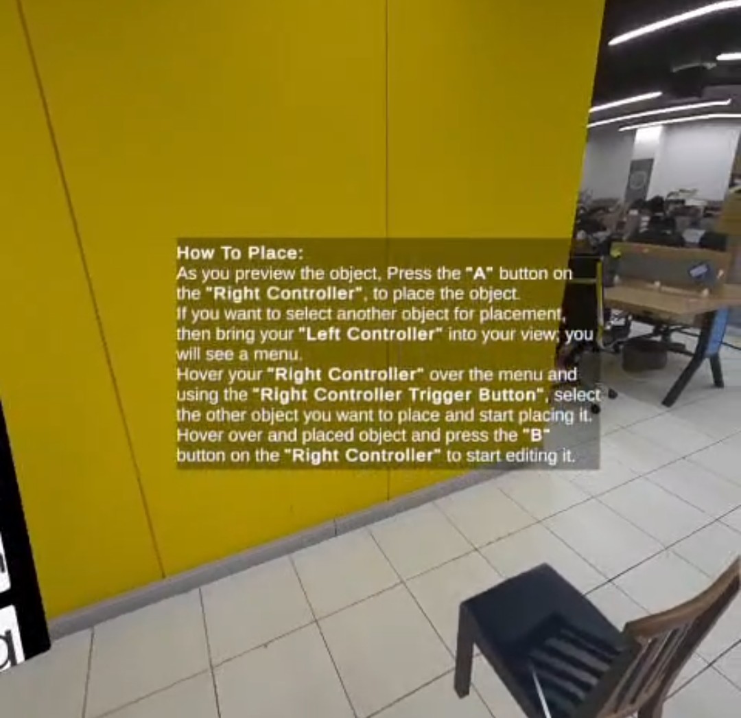 An immersive VR and AR experience where users can upload, place, scale, and interact with objects in real time. The project focuses on intuitive spatial interaction, smooth performance, and persistent cloud saving, allowing users to seamlessly create, adjust, and continue their work across VR and AR sessions.